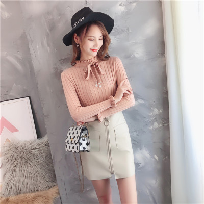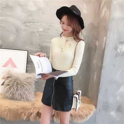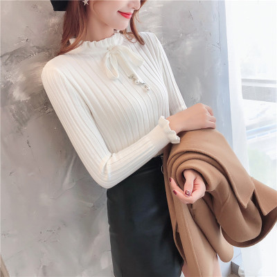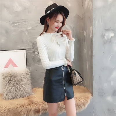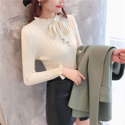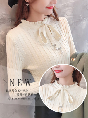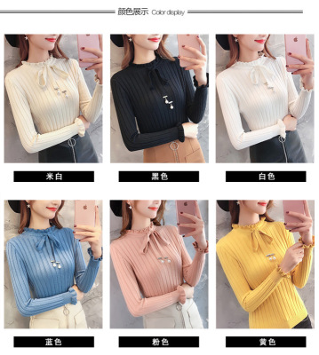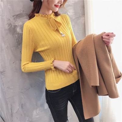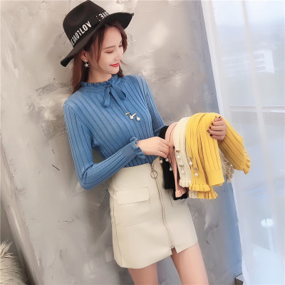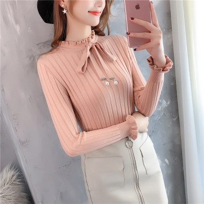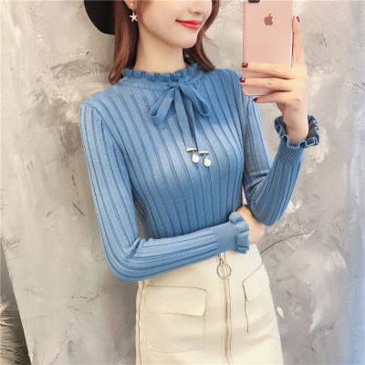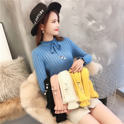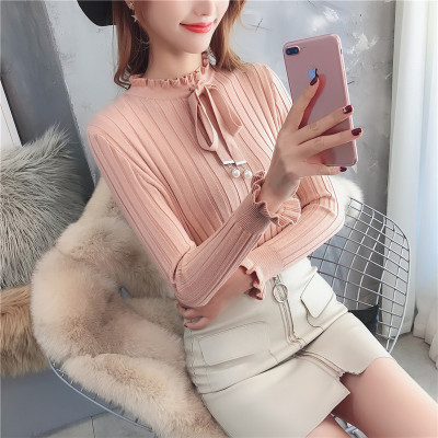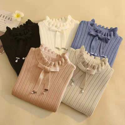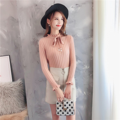 Net red sweater women's spring 2020 new Korean lace collar lace up bottom coat fashion sweet lotus edge sweater