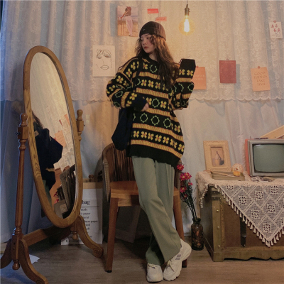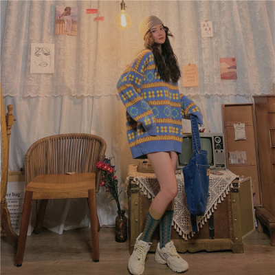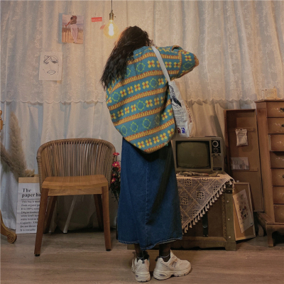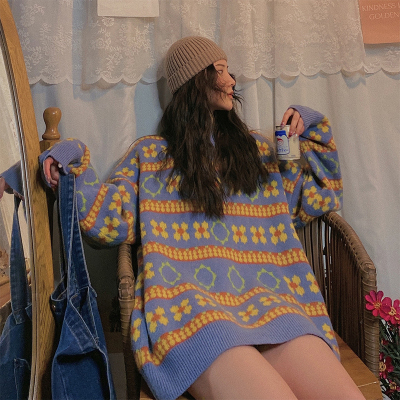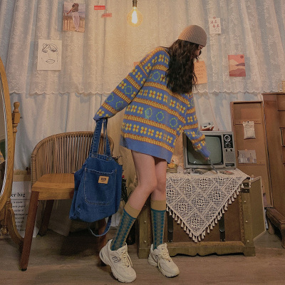 Light blue Vintage stripe T-Shirt Top Women's fall 2020 new loose long sleeve Vintage sweater trend