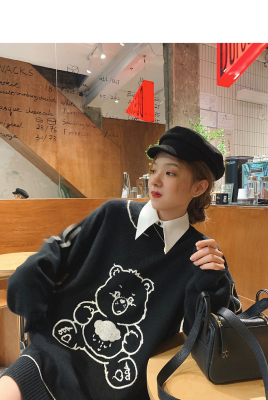 Zhang Dayi love bear cooperation 2020 women's autumn thin sweater new sweater loose wear
