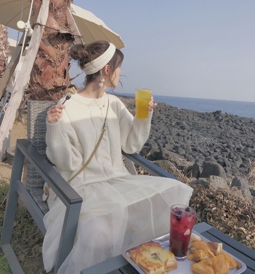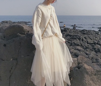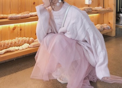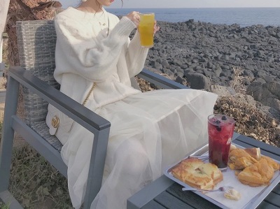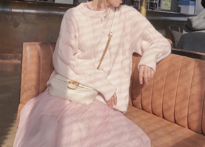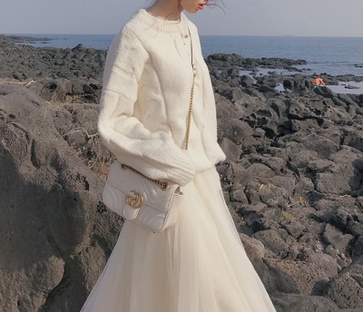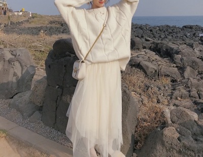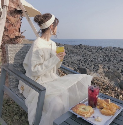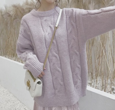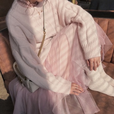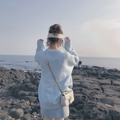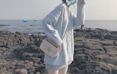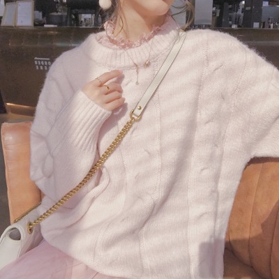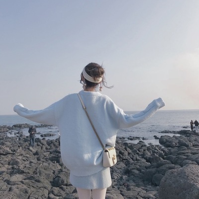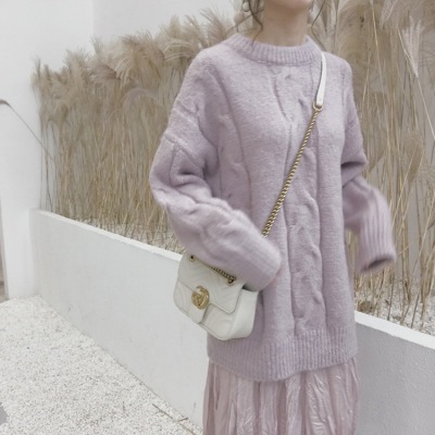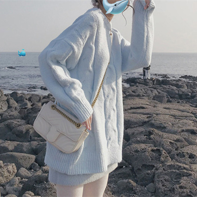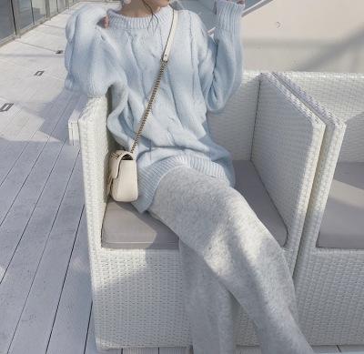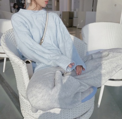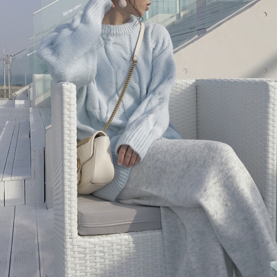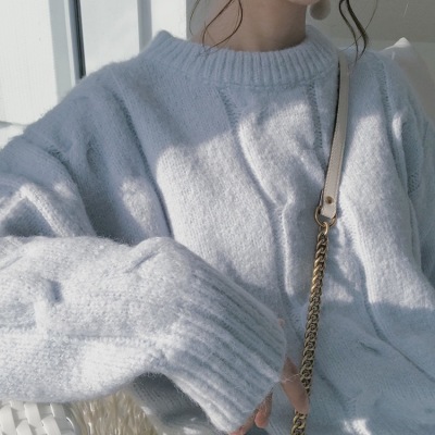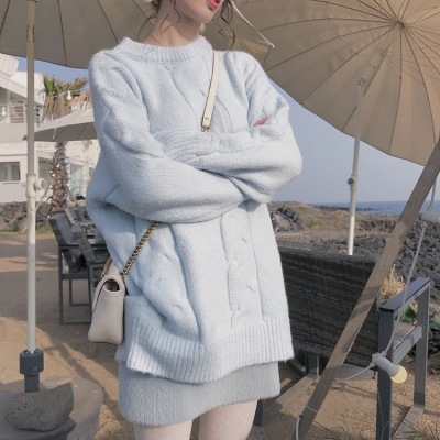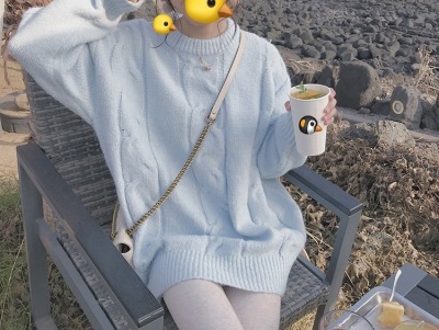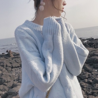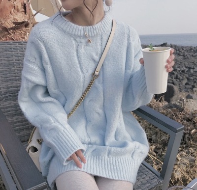 Languid and loose style, wearing soft milk blue twist sweater for female autumn and winter small man with thick Pullover mohair sweater