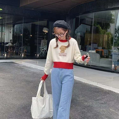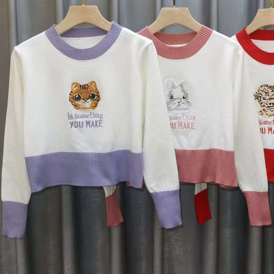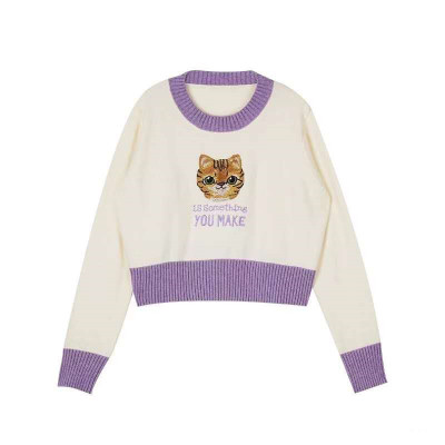 Korean embroidery short high waisted round neck sweater for women wearing lovely Pullover Japanese sweater in autumn