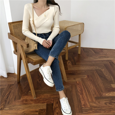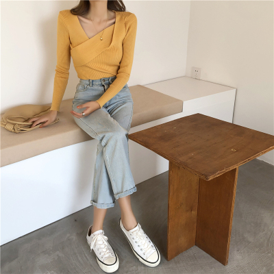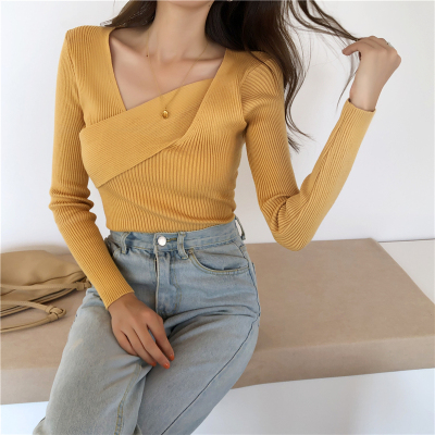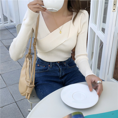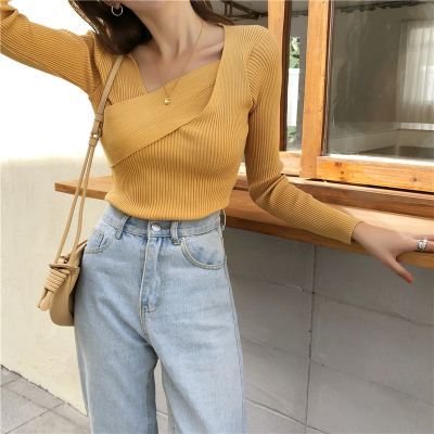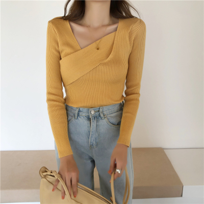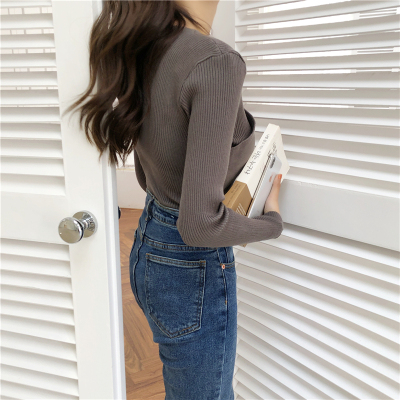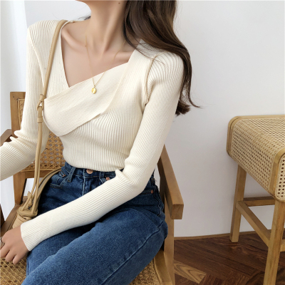 實拍 加厚款 小眾設計感打底針織衫ins洋氣百搭短款上衣