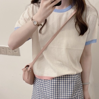 Qiujia's homemade cheese short college round neck short sleeve T-shirt