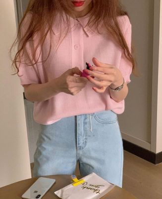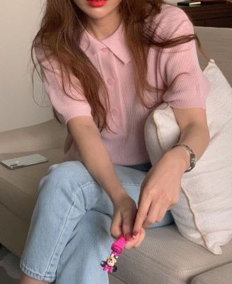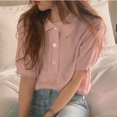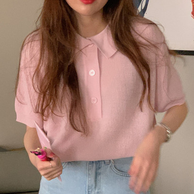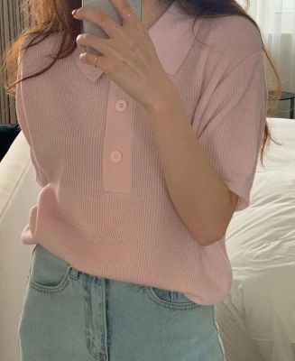 Soft pink Lapel short sleeve T-shirt