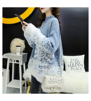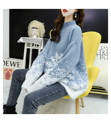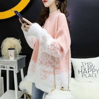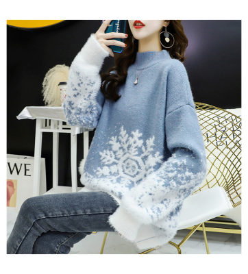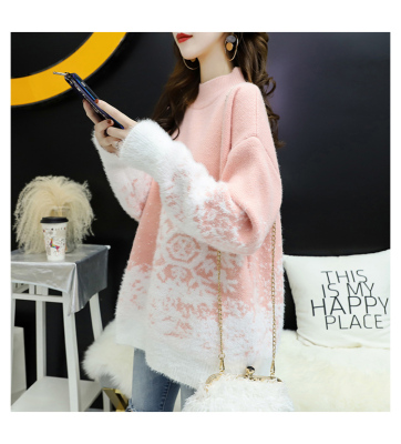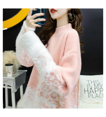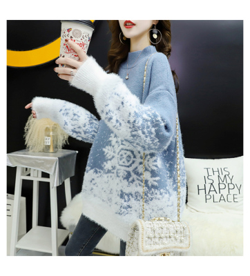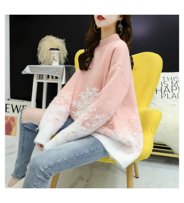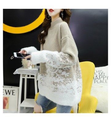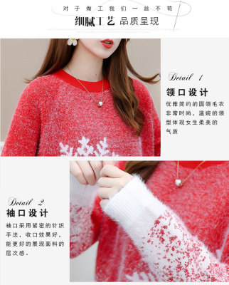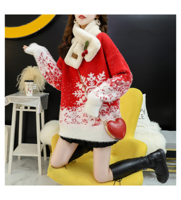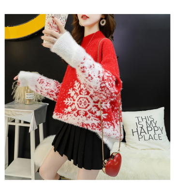 Red Christmas Sweater for women 2020 new autumn / winter loose wear heavy net red half high collar bottom coat