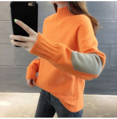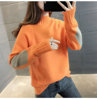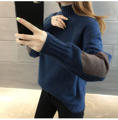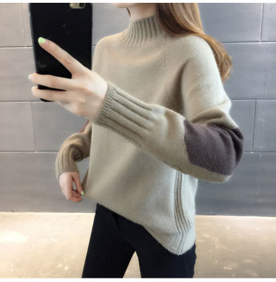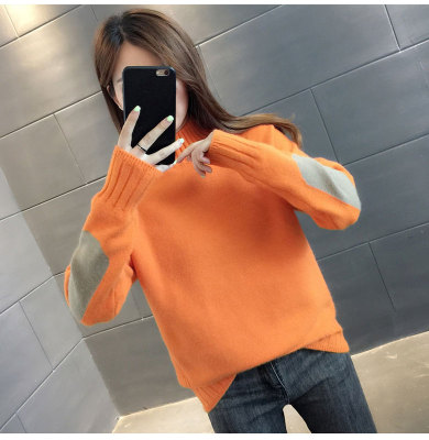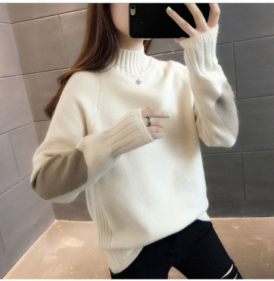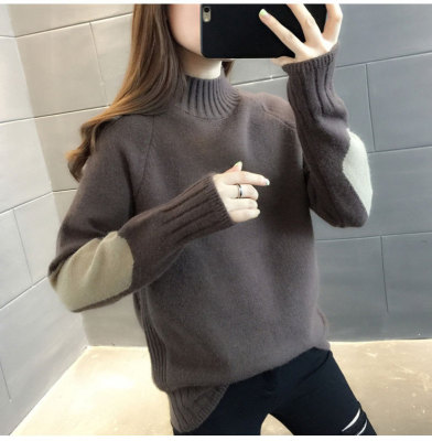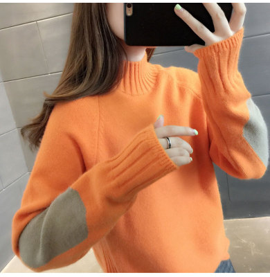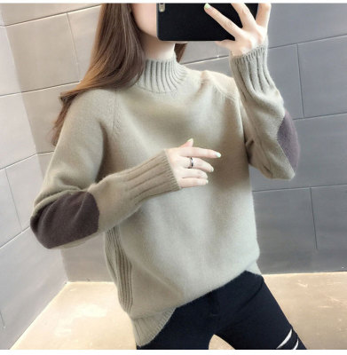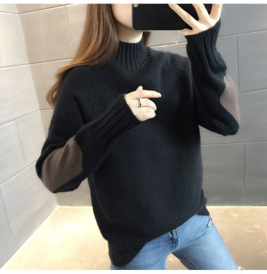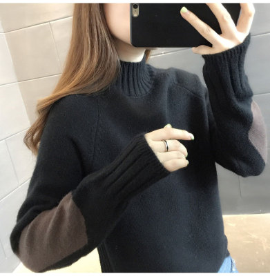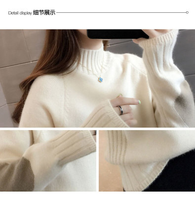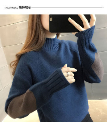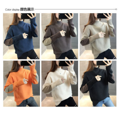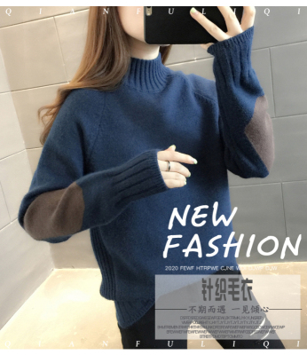 Half high neck sweater women's loose T-Shirt NEW autumn and winter versatile bottoming shirt with foreign style and thickened Pullover