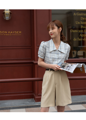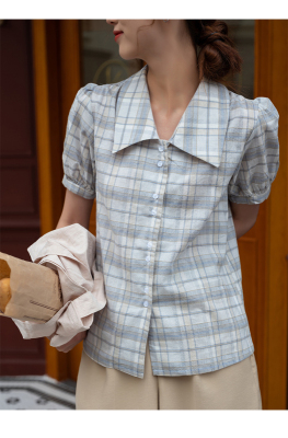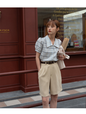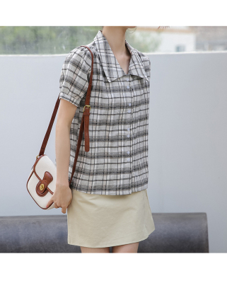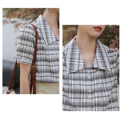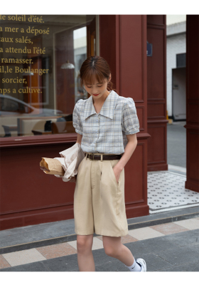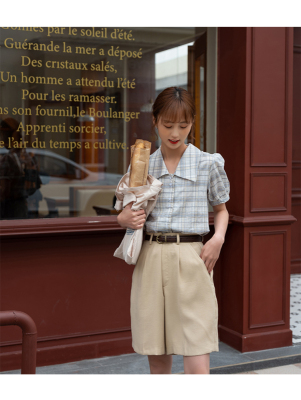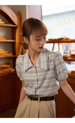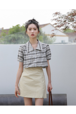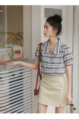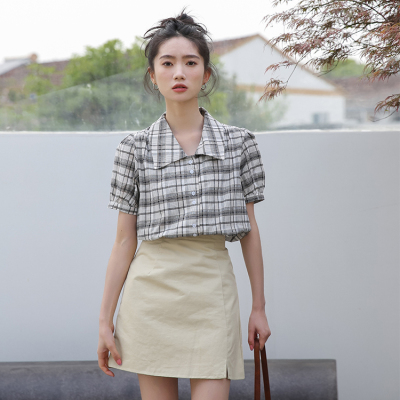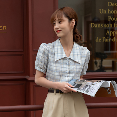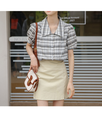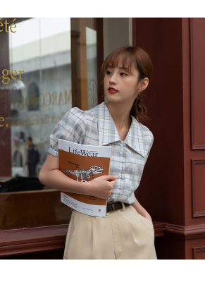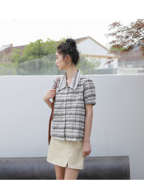 實拍2021夏季新款韓版短款泡泡短袖設計感小眾襯衫