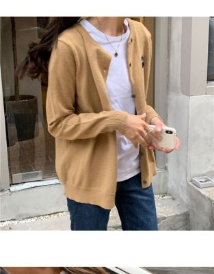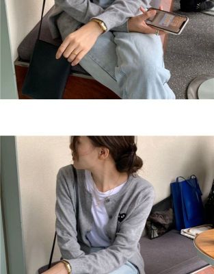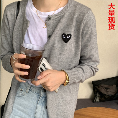2020 spring and Autumn New Korean peach heart knitted cardigan women's long sleeve short slim bottomed sweater small coat
