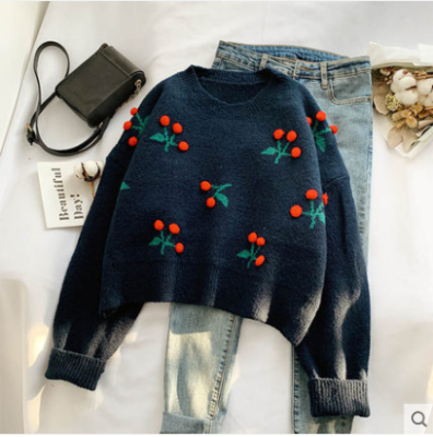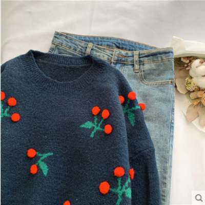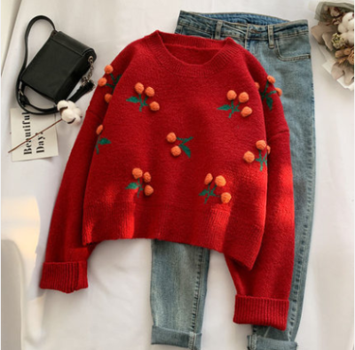 Cherry cheriz red sweater women's autumn winter Korean version loose wear foreign style 2020 new Pullover Top