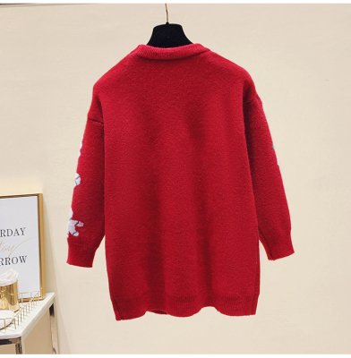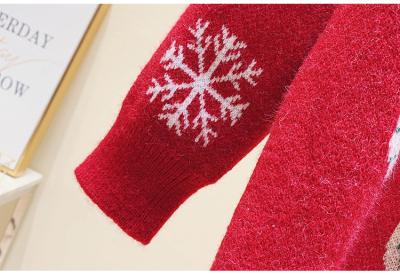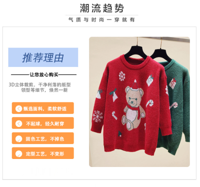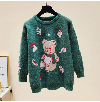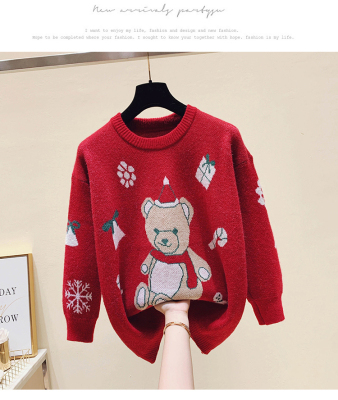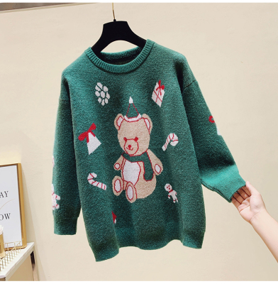 Autumn / winter 2020 new Christmas style lazy round neck little bear jacquard loose T-shirt long sleeve top women fashion
