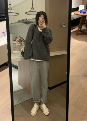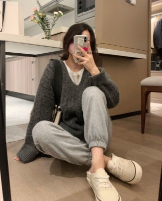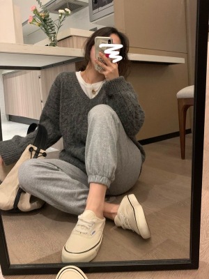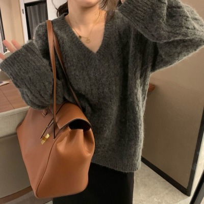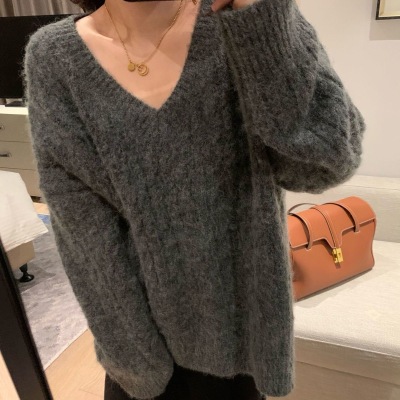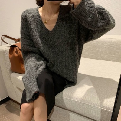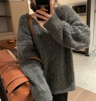Soft waxy Plush V-neck twist sweater fashionable languid Bozhu sweater