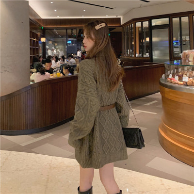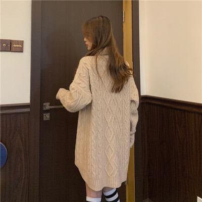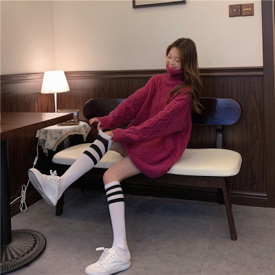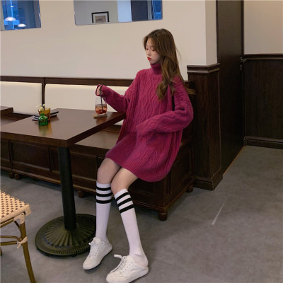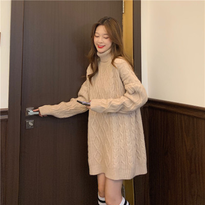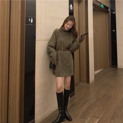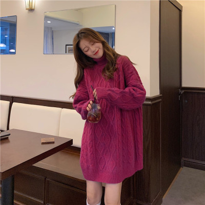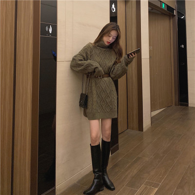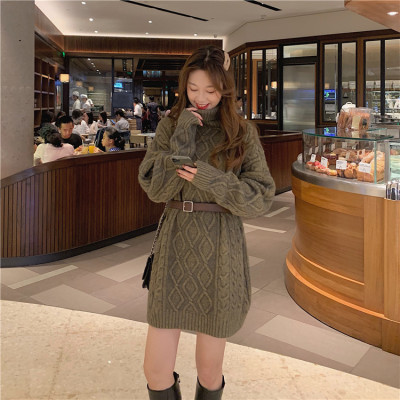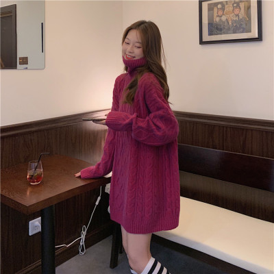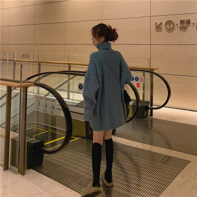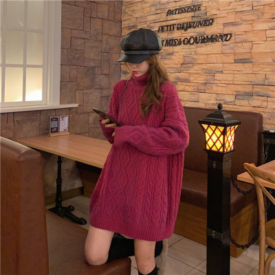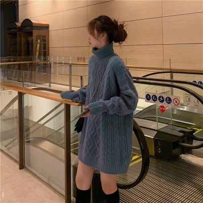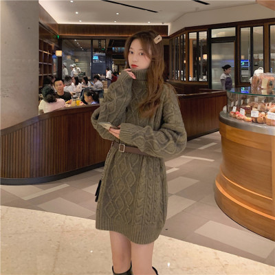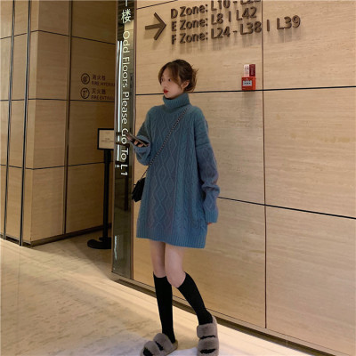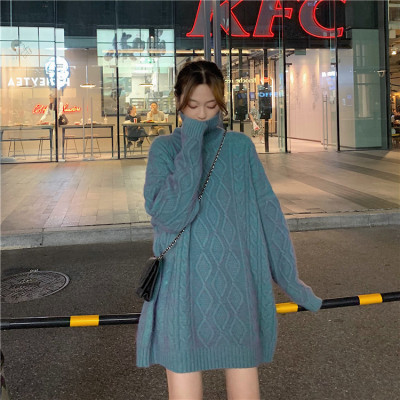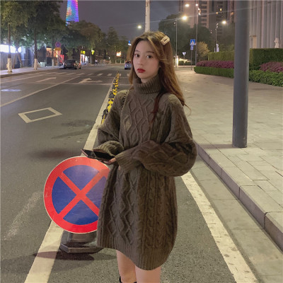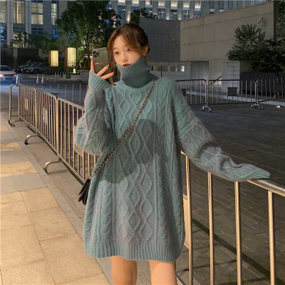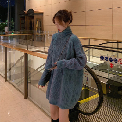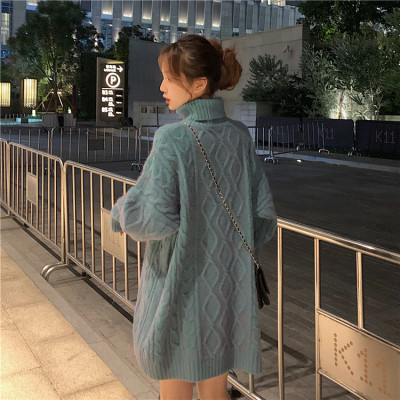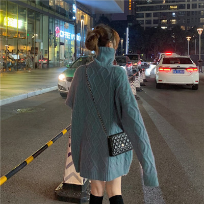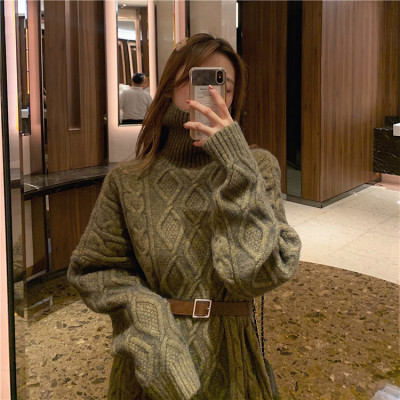 Autumn and winter lazy wind twist cocoon Pullover Sweater for women to wear medium and long high neck thickened knitted jacket