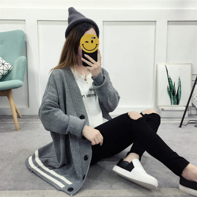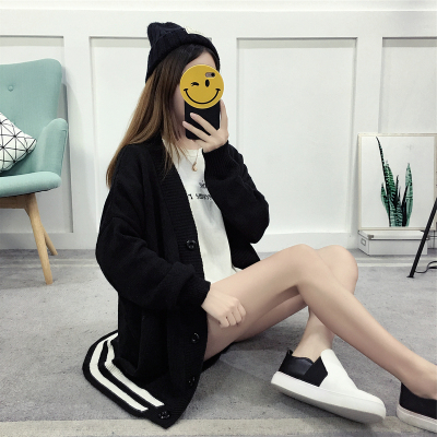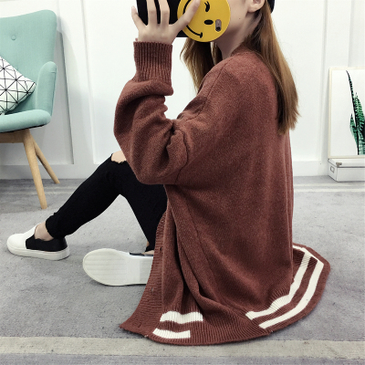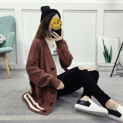 Real time sweater cardigan autumn winter loose Korean student knitting mid long 2019 new color matching coat fashion