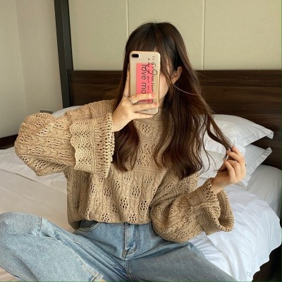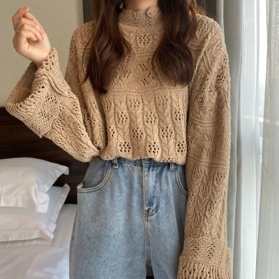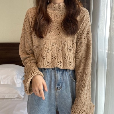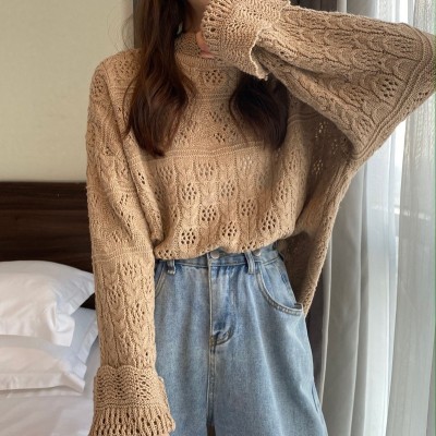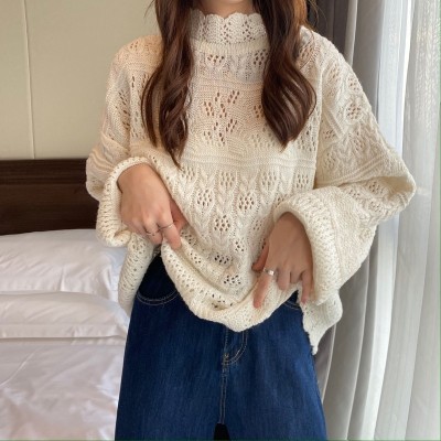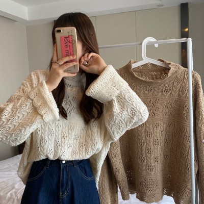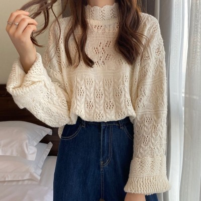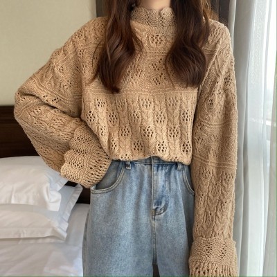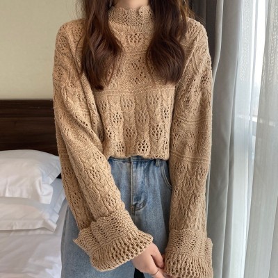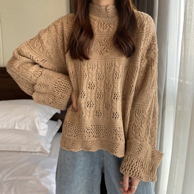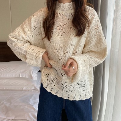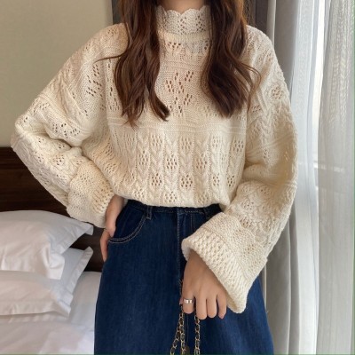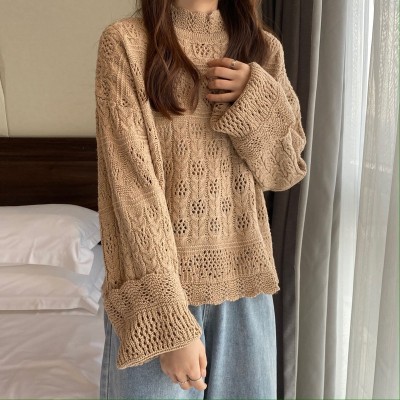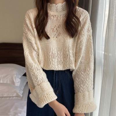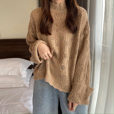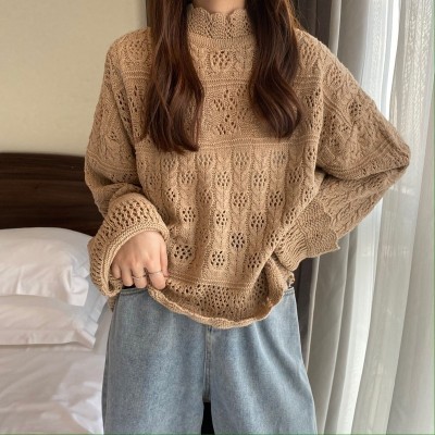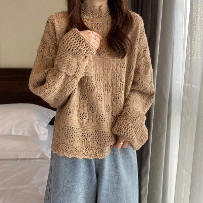 Real price real shot new French design jacquard wisp loose loose half high collar loose knit top