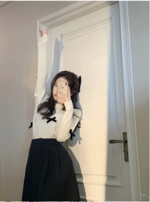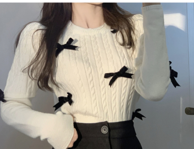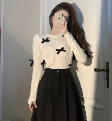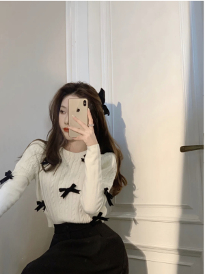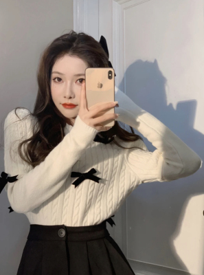 實拍實價毛衣套頭秋冬新款修身內搭蝴蝶結針織衫上衣潮