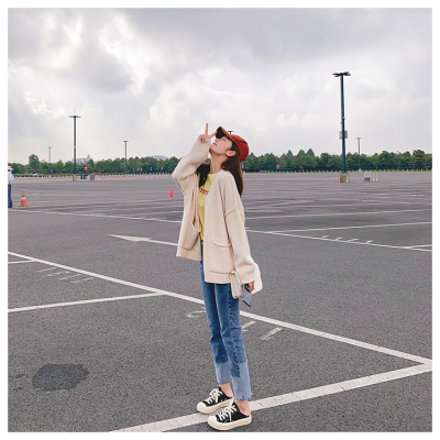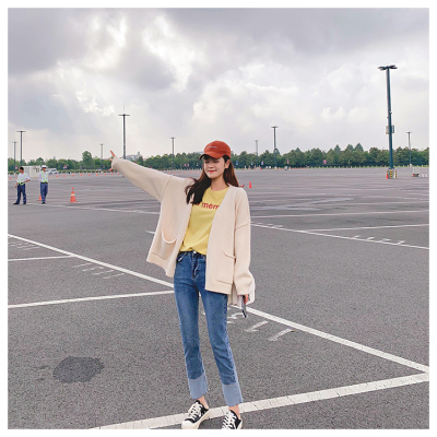 Official website ~ autumn and winter new sweater coat student solid color simple knitting versatile top good quality