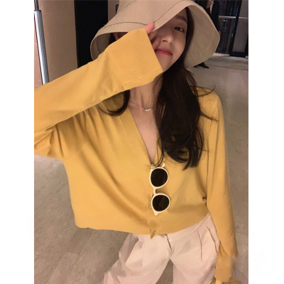 Spring and autumn knitted cardigan women's new 2020 V-neck bottoming top lazy wind short coat thin