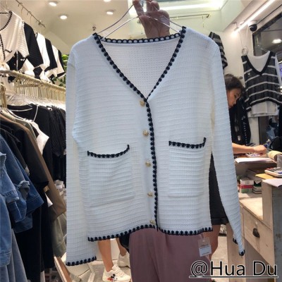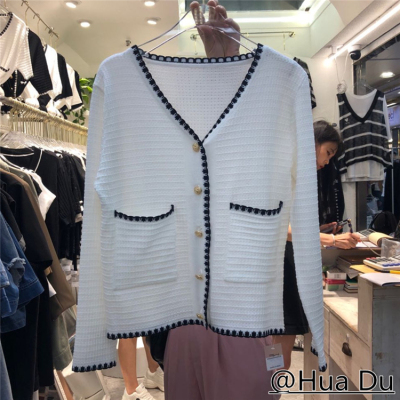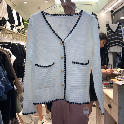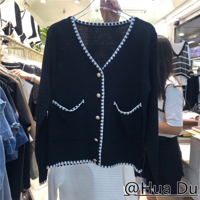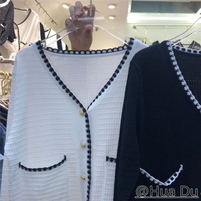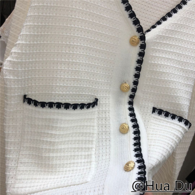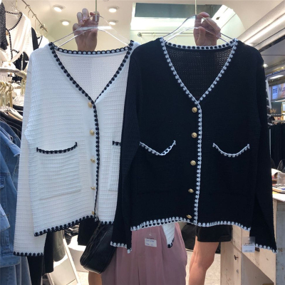 Seasonal thin coat women 2020 small fragrance high waist slim short single breasted ice silk knitted cardigan top fashion