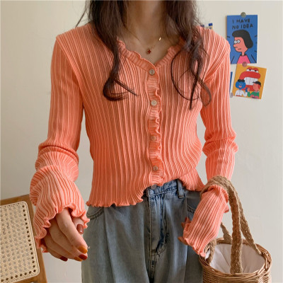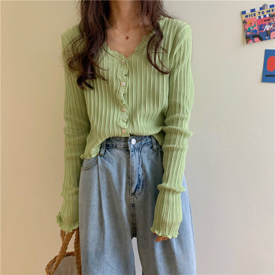2020 summer new Korean Short BM thin top long sleeve t-shirt female purple V-neck slim sunscreen cardigan