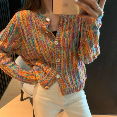 Rainbow wear sweater women 2020 new Korean loose knit top spring casual cardigan coat