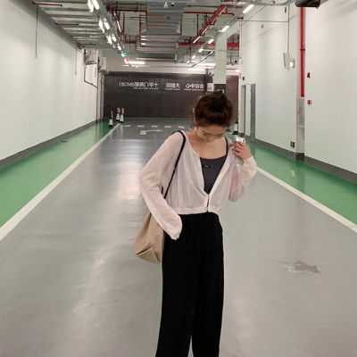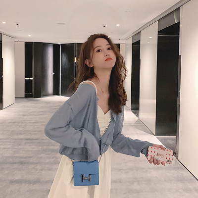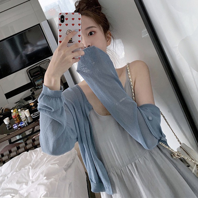 Air conditioning shirt women's cardigan 2020 new summer ultra thin sun proof clothing long sleeve knitwear short top thin coat