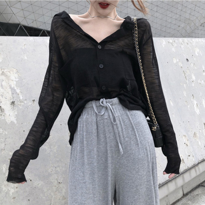 Small sunscreen shirt ice silk summer thin coat loose with air conditioning cardigan sunscreen Jacket Women Short breathable