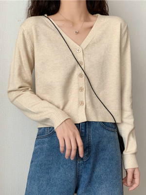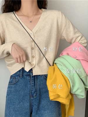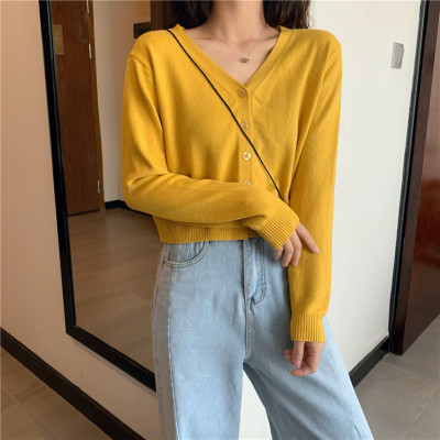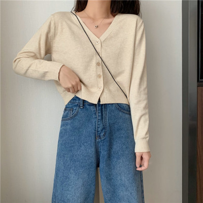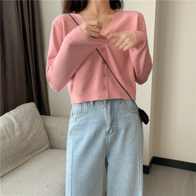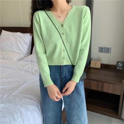 2020 new knitted cardigan women's Korean spring and autumn small short V-neck with long sleeve thin sweater coat