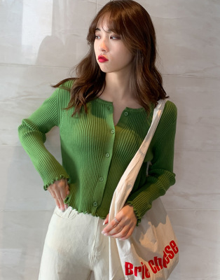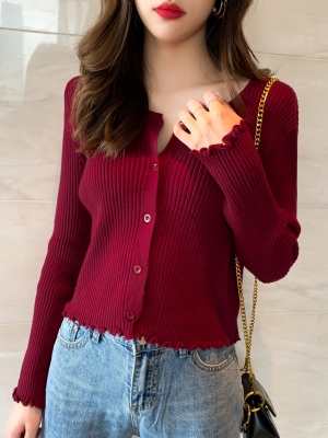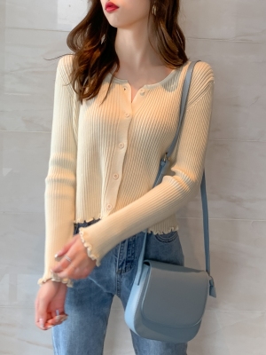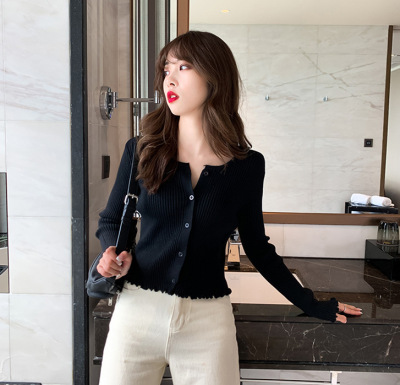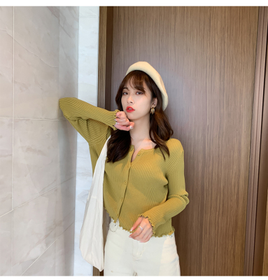 Early autumn net red short top 2019 spring and autumn winter new long sleeve loose knit cardigan coat bottom sweater for women