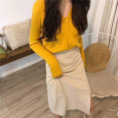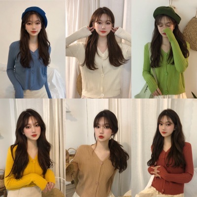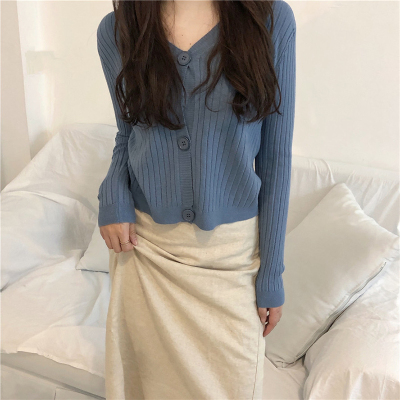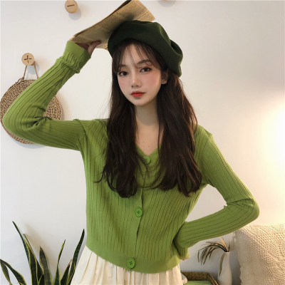 Korean 2020 new temperament V-Neck long sleeve knitted cardigan thin versatile loose short top women's wear