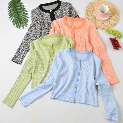Korean version of small fragrant style autumn slim short jacket knitted cardigan long sleeve knitwear fashion