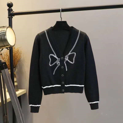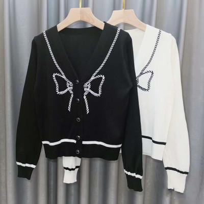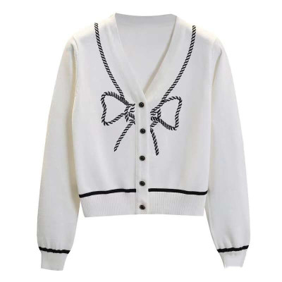 Bow embroidery cardigan women's autumn winter new sweater with V-Neck long sleeve short soft wind sweater top