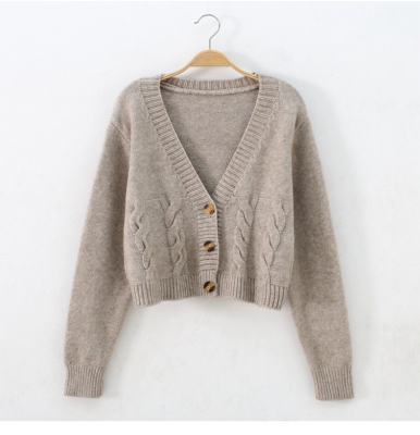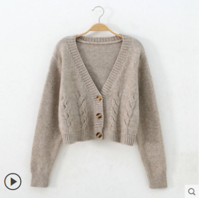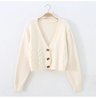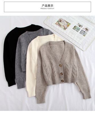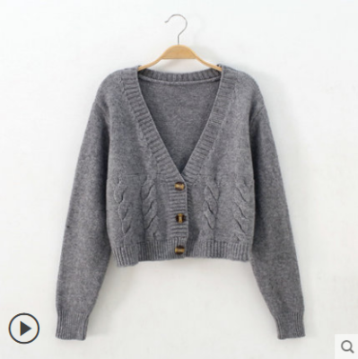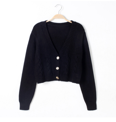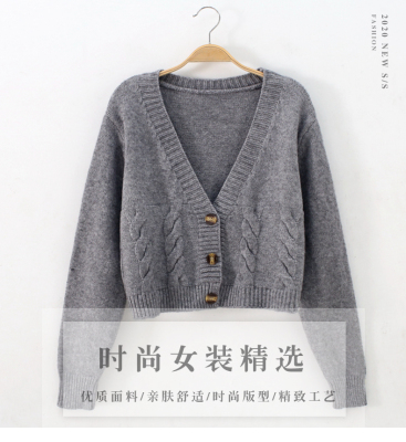 Short high waisted plastic flower sweater for women 2020 new single breasted knitted cardigan