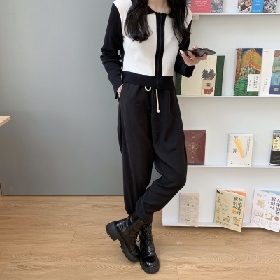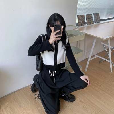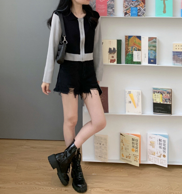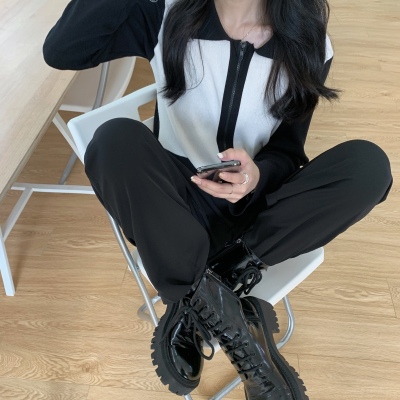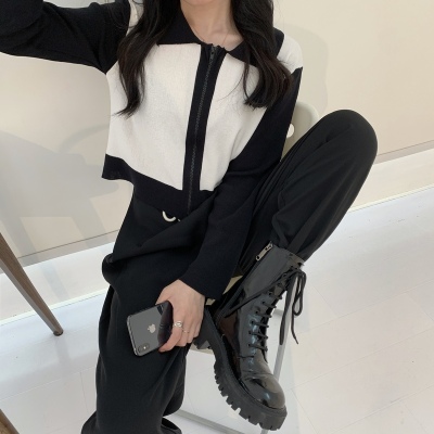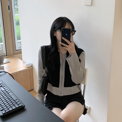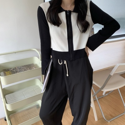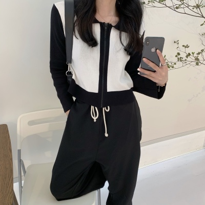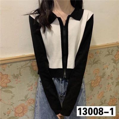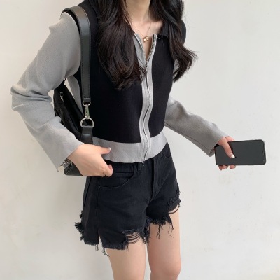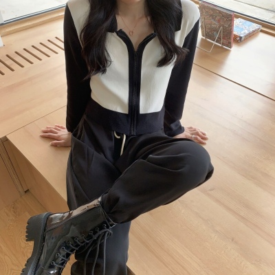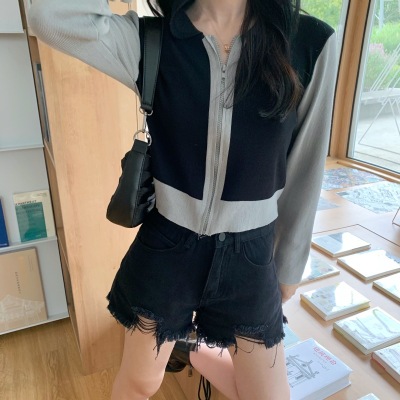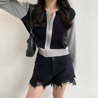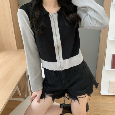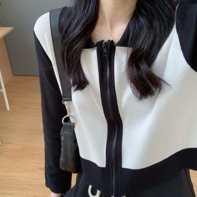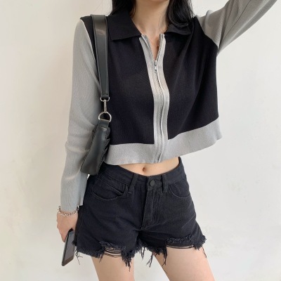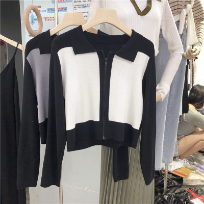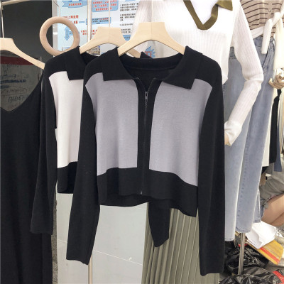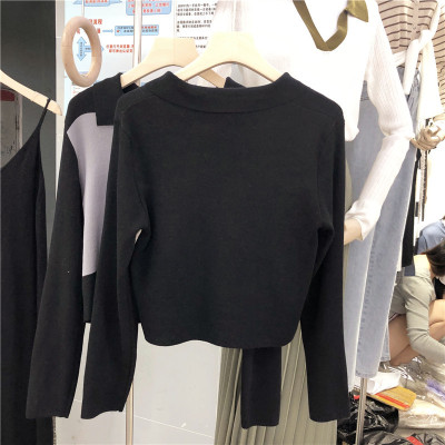 South Korea East Gate autumn dress 2020 new slim short Knitted Top Women's cardigan Long Sleeve Polo neck T-shirt