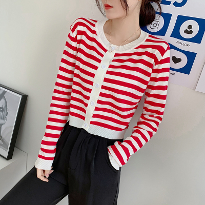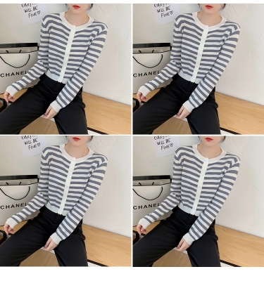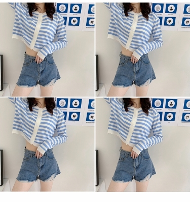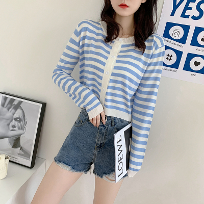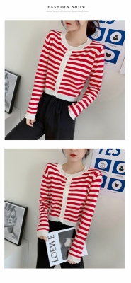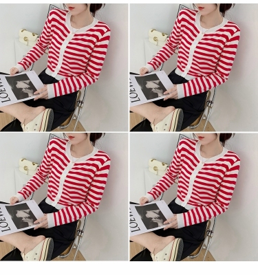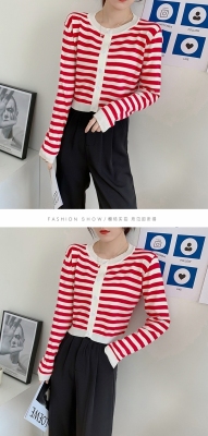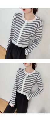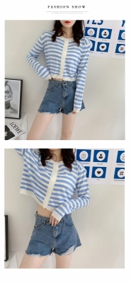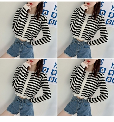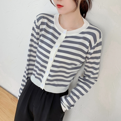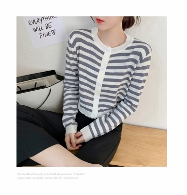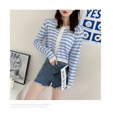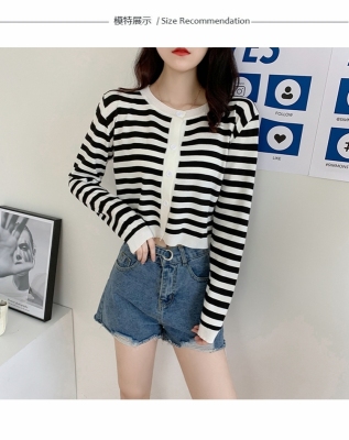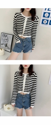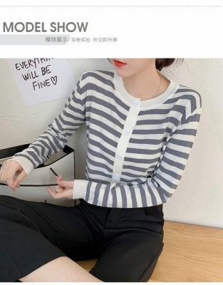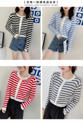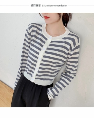 Real shot versatile basic simple design soft waxy comfortable striped T-shirt cardigan coat women's autumn top