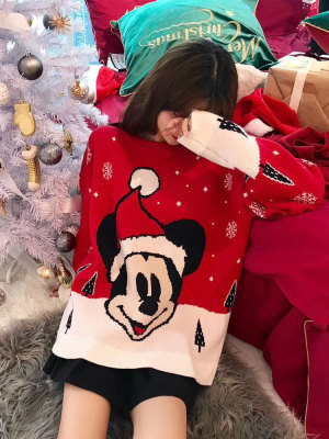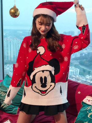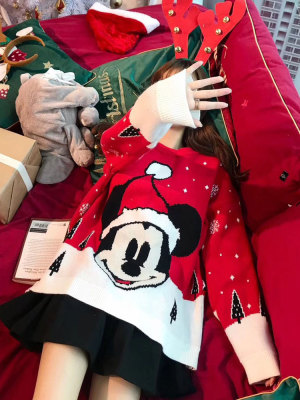 Christmas Sweater women Retro Style Hong Kong flavor red Mickey 2019 new fashion wear net red foreign style