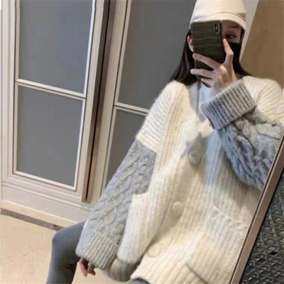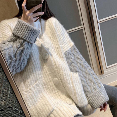 2020 autumn winter twist loose lazy college style knitted cardigan coarse wool Korean medium long sweater women's coat