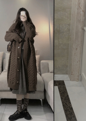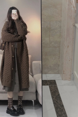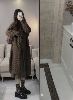實拍毛衣外穿秋冬韓版復古麻花中長款寬鬆V領長袖針織外套女潮