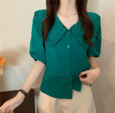 A sense of real shot design: minority Top Shirt women's summer thin 2021 new baby collar bubble sleeve shirt