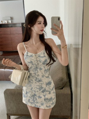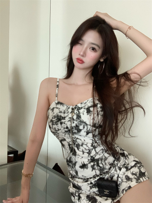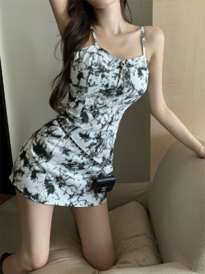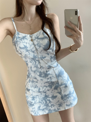Japanese heavy industry tie dye slim A-chain hot girl suspender skirt