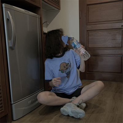Short-sleeved T-shirt jacket with matched colours in Xiao Feixiang Printing and retro street style in Korea
