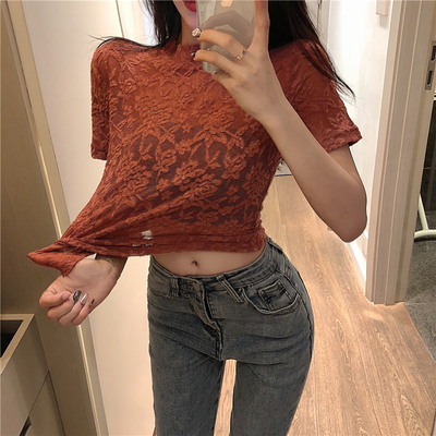 Real-price Sexy Lace Top with Tight Sleeves and Retro Design