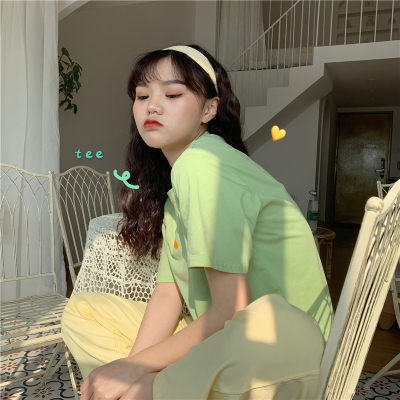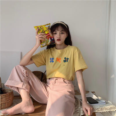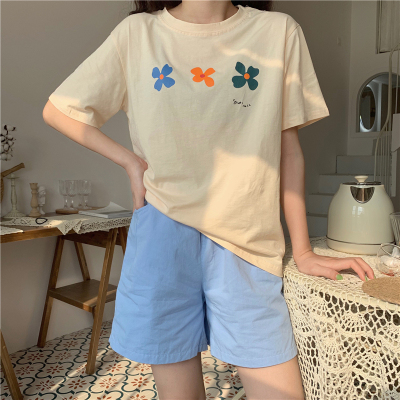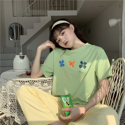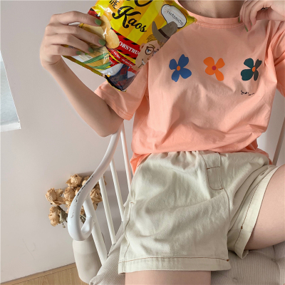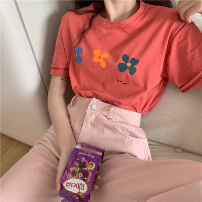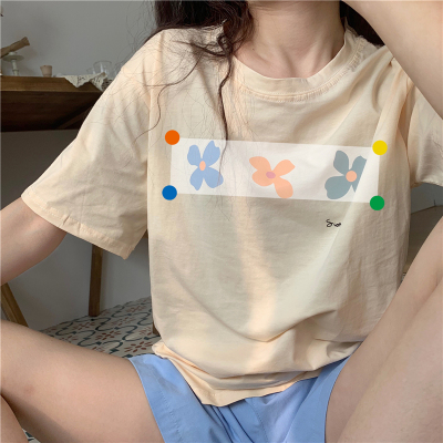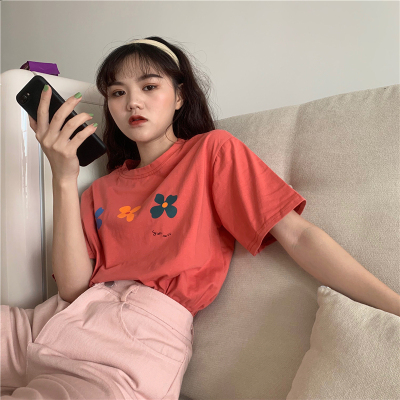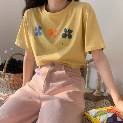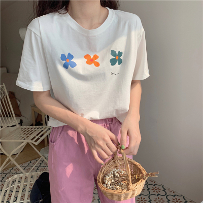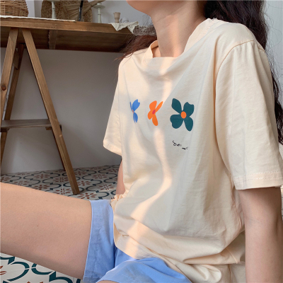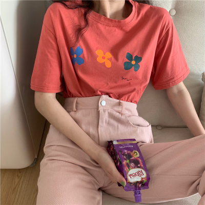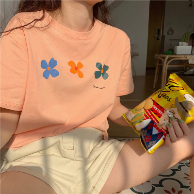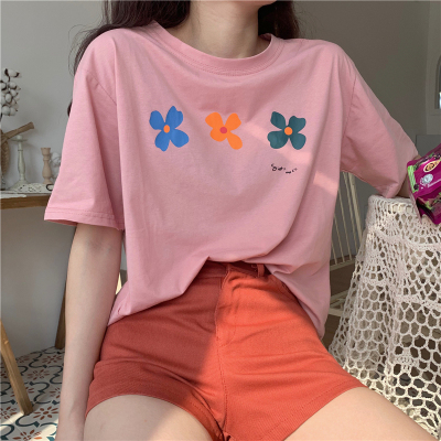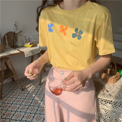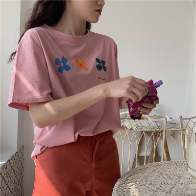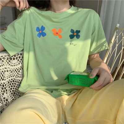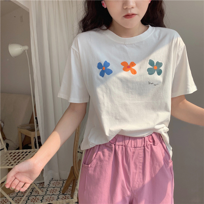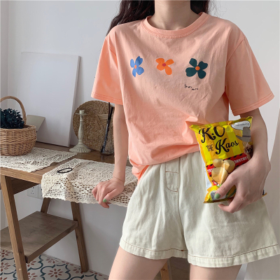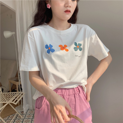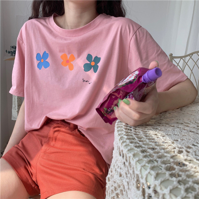 Real photo real price funny little flower letter printing short sleeve loose shirt