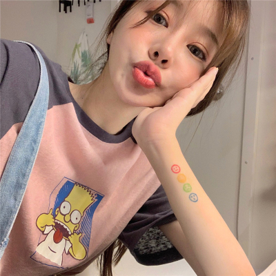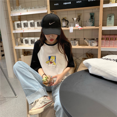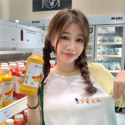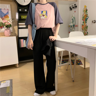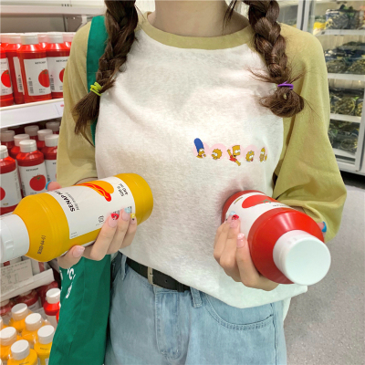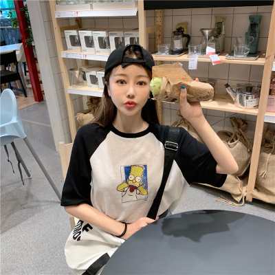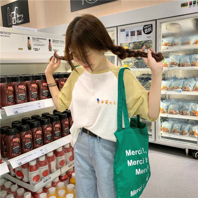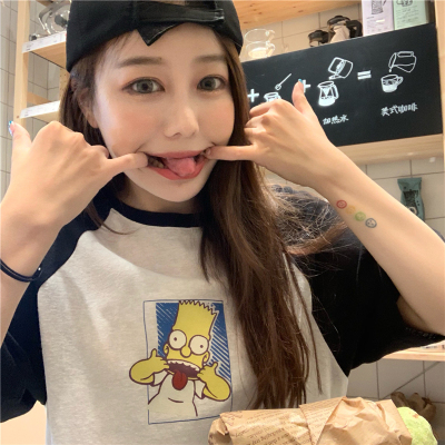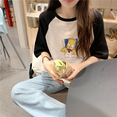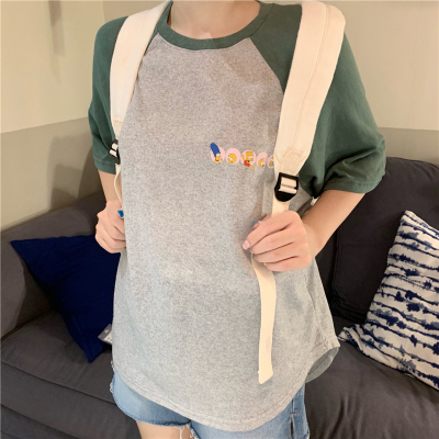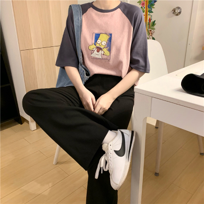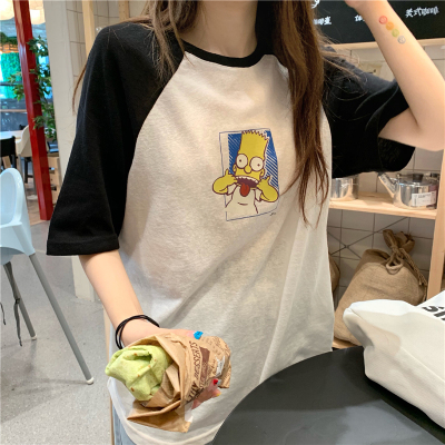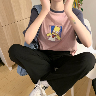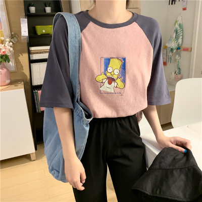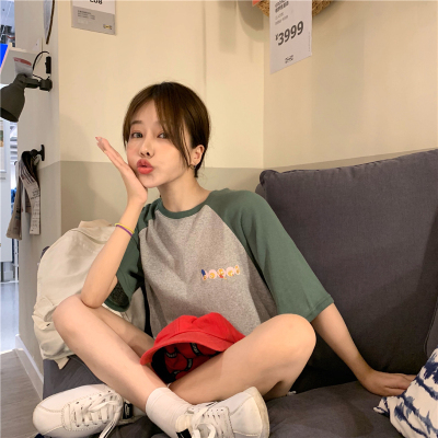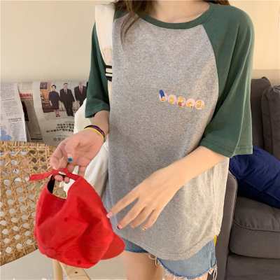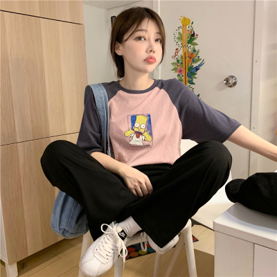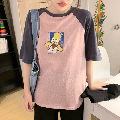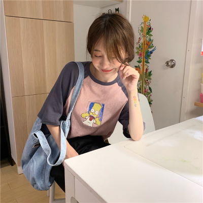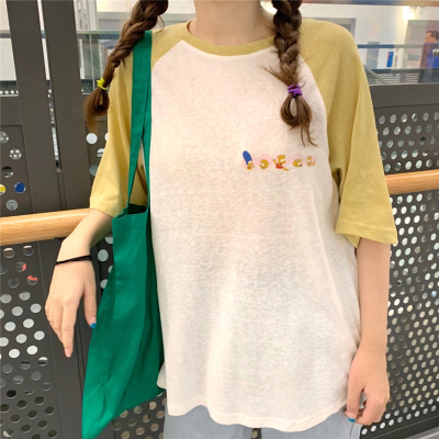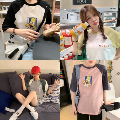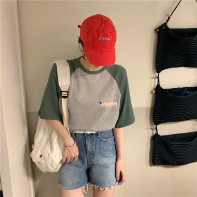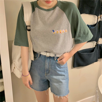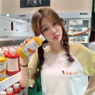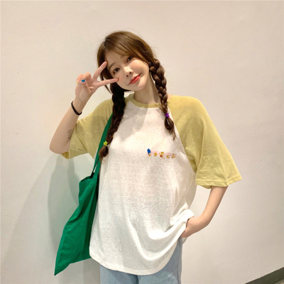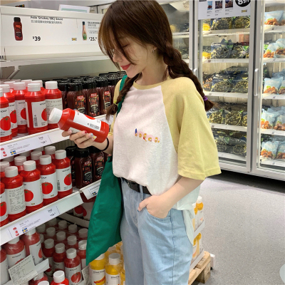 Real photo real price color contrast short sleeve loose shirt women's top summer women's new fashion