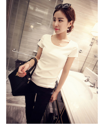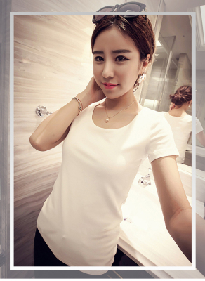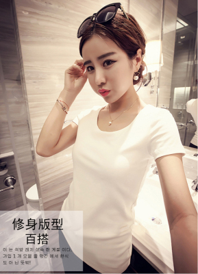 Official picture white short sleeve T-shirt women's summer half sleeve simple slim fit T-shirt solid color top
