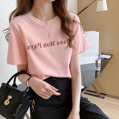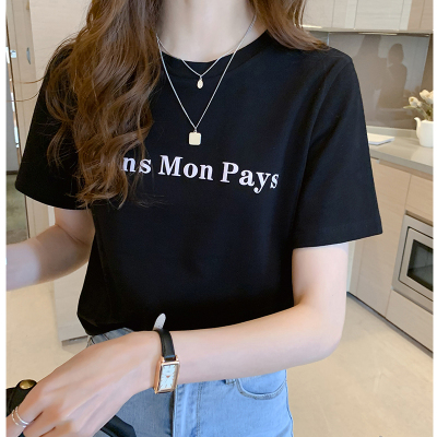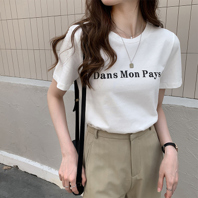 6535 cotton short sleeve T-shirt women 2020 new Korean letter printing top loose half sleeve T-shirt bottoming shirt