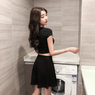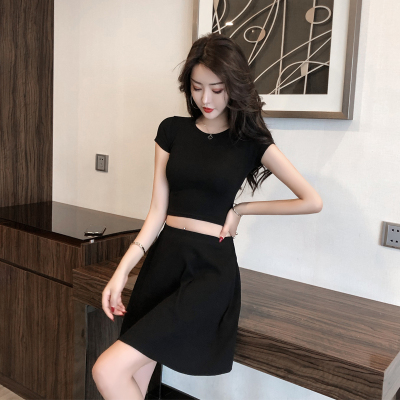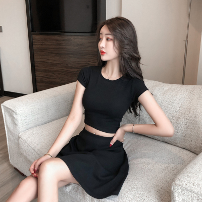2020 summer new all-around Korean retro girls sports high waist round neck basic short T-Shirt Top