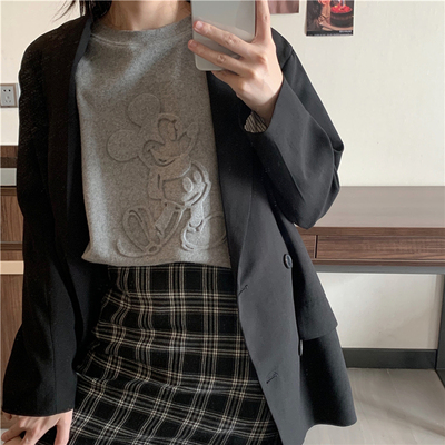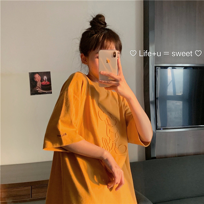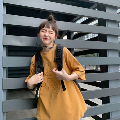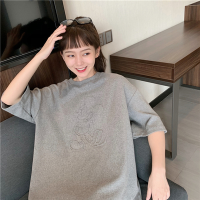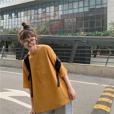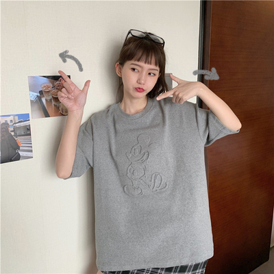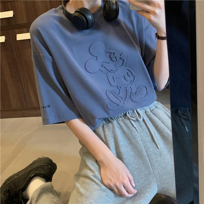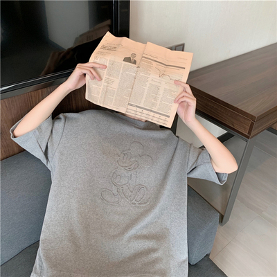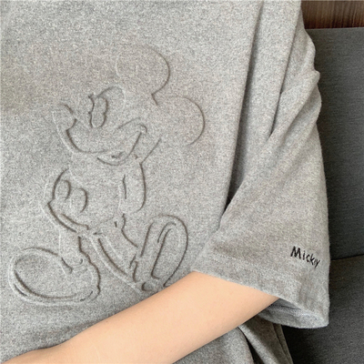 Photo 6535 cotton Mickey 3D heavy industry short sleeve T-shirt women's loose large