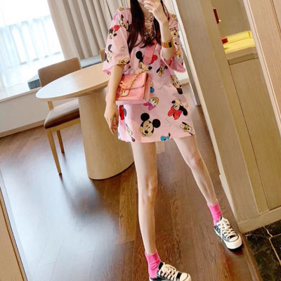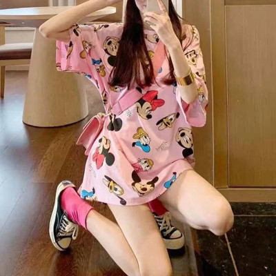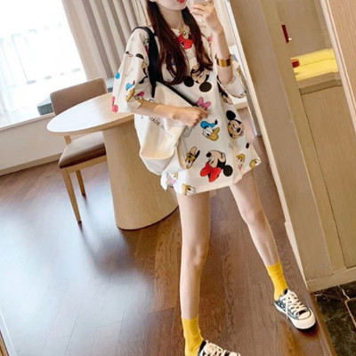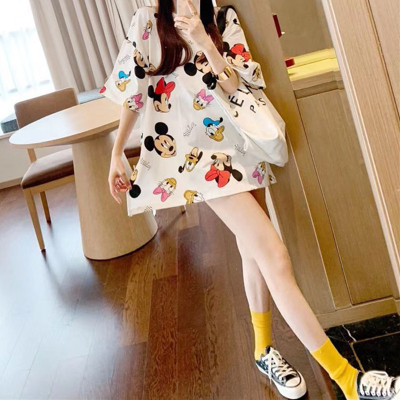 Official photo 6535 pull frame cotton short sleeve T-shirt women's medium length printed Mickey Mouse cartoon