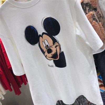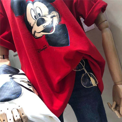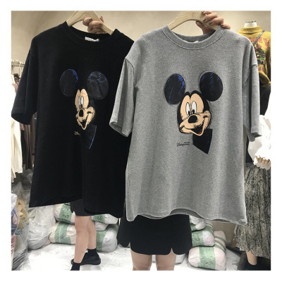 Official photo 6535 pull frame cotton short sleeve t-shirt female print medium long Mickey Mouse