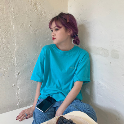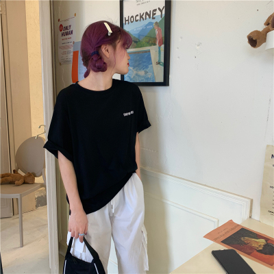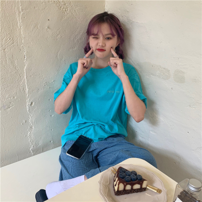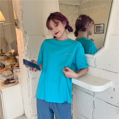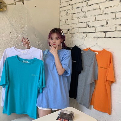 Real photo, real price, multi-color basic model, letter embroidery, round neck, loose tee